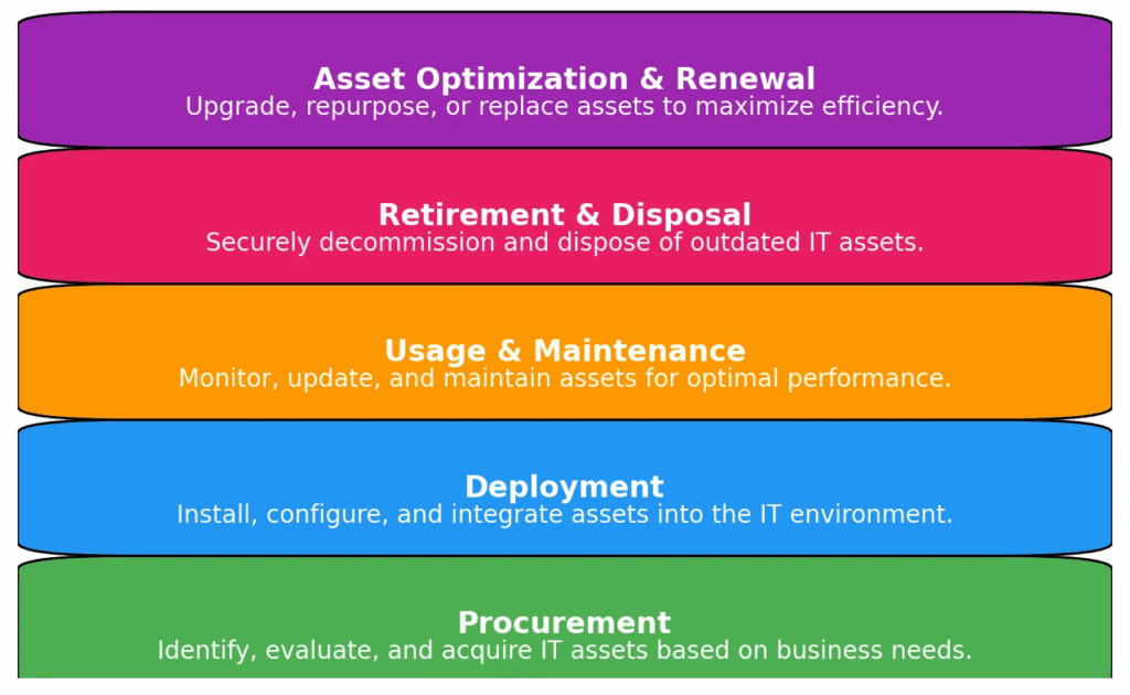 Each type of IT asset may vary in useful life and IT asset depreciation rate based on technological advancements and usage. For example, shelf life of laptops and computers are generally last 3 to 5 years, while servers and networking equipment may extend to 5 to 7 years.
