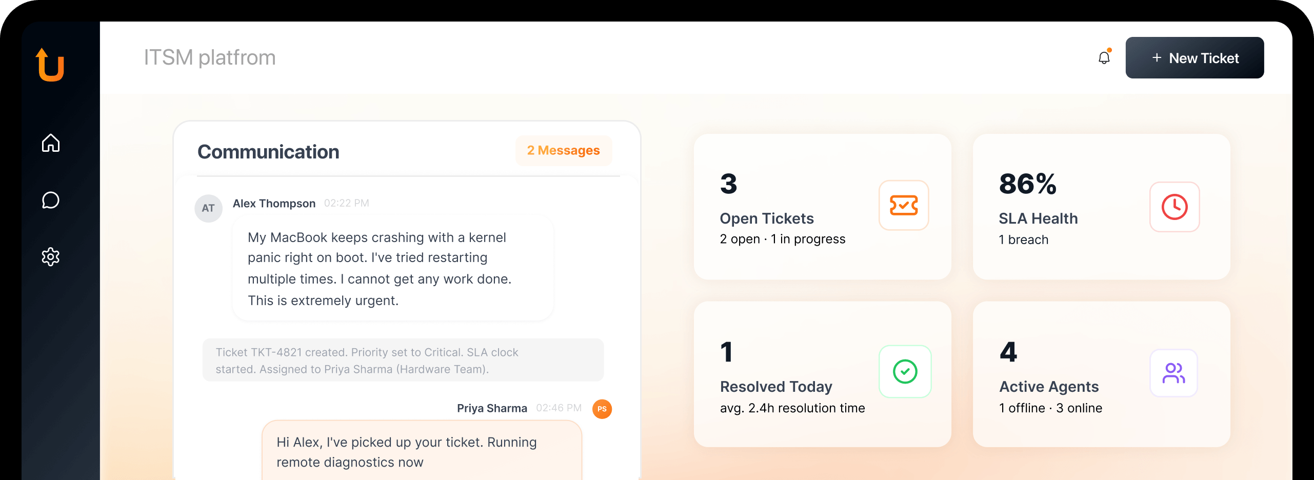 Every ticket carries context, priority, and communication